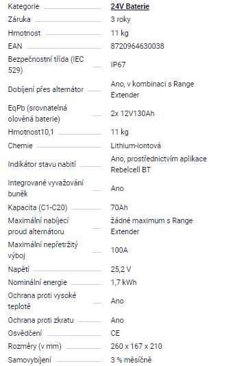 📌 Hledáte inteligentní a výkonný zdroj energie pro váš 24V lodní motor, který vám poskytne spolehlivý výkon, nízkou hmotnost a možnost kontroly stavu baterie kdykoli a odkudkoli? Rebelcell 24V70 BT je špičková lithiová baterie vybavená Bluetooth monitoringem, která přináší vysokou kapacitu, dlouhou výdrž a maximální bezpečnost v jednom elegantním řešení.