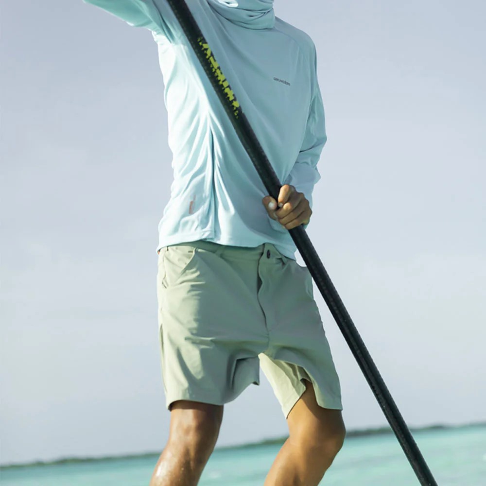 Kraťasy Gaff jsou ideální volbou pro každého rybáře, který ocení pohodlí a funkčnost. Díky tkanině ze směsi nylonu a spandexu ošetřené DWR úpravou, poskytují voděodolné a rychleschnoucí vlastnosti. Kraťasy jsou vyrobené z udržitelného materiálu. Disponují praktickými bočními kapsami.