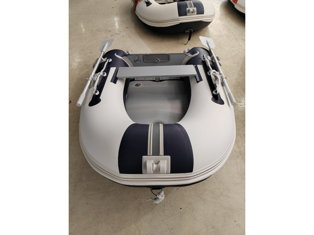 Celonafukovací kompaktní člun, který je určen zejména pro příjemné trávení dovolené u vody. Člun lze využít na jednodenní vyjížďky pro přibližování se na nedostupná místa ze břehu či jako dinghy, tender pro větší jachty. Člun je vybaven držákem motoru, na který jde zavěsit motor o maximálním výkonu 2,5 Hp. Jedná se o velmi stabilní a bezpečný člun k použití na moři i na řece, zároveň ho lze celý jednoduše vyfouknout, zabalit do tašky a odnést, kam je potřeba. Má skvělé jízdní vlasnosti díky nafukovacímu kýlu a tvaru dna do V. Člun má vysokou sedící pozici, díky nafukovacím válcům o průměru 38 cm, zároveň disponuje širokým kokpitem. Dalším důležitým prvkem je posuvná možnost lavičky pro nalezení ideálního místa k sezení pro ovládání motoru. Zároveň má člun již nalepené držáky pro bimini, sluneční stříšky - stačí dokoupit sluneční stříšku a jste chráněni před sluncem. Dalším důležitým prvkem je přední rolna pro uchycení kotvy nebo vnitřní přední oko pro její uchycení. Dále tento model nabízí dodatečná madla pro snadné přenášení člunu. Tento model je vybaven vysokotlakou podlahou. Obsahem balení jsou člun s vysokotlakou podlahou, vesla, lavička, sada lepení, taška na přepravu člunu, nožní pumpa na nafouknutí člunu a uživatelský manuál.