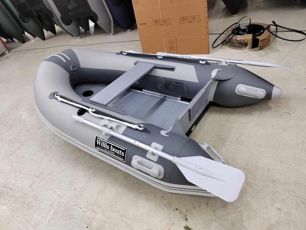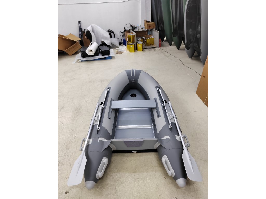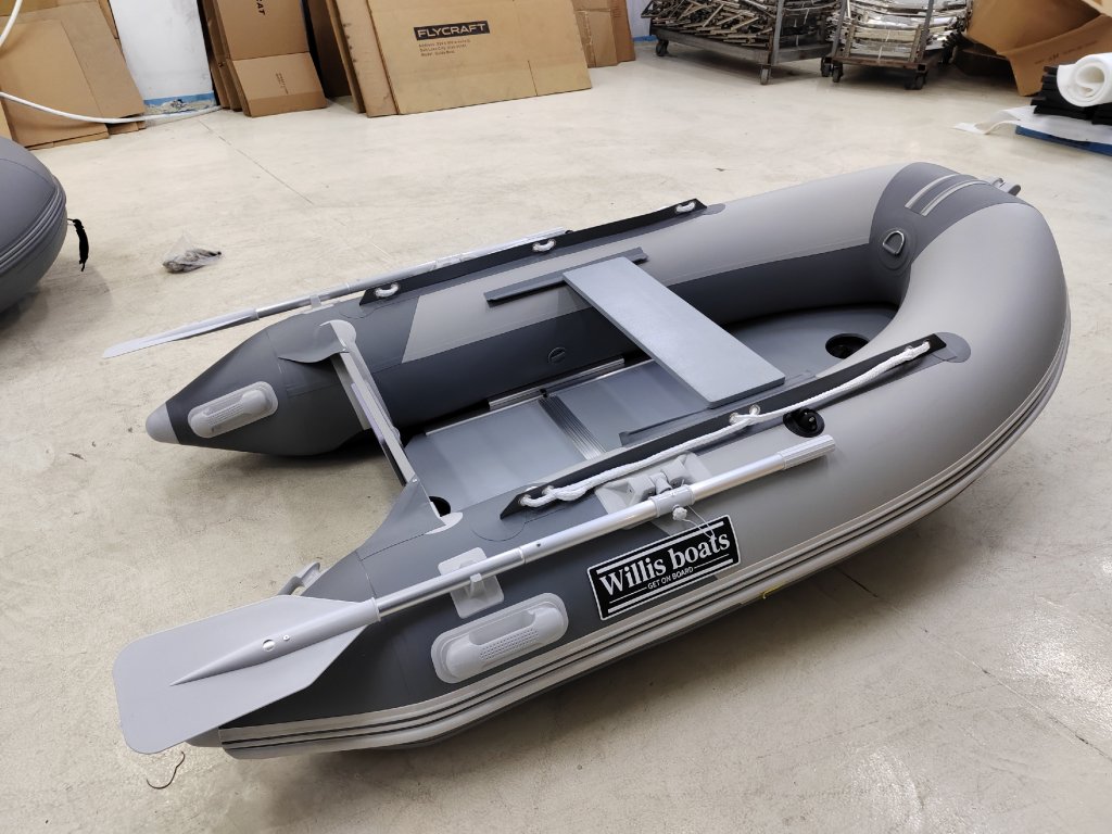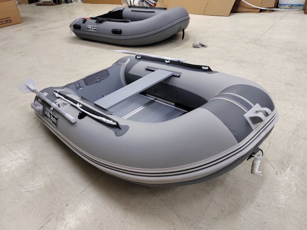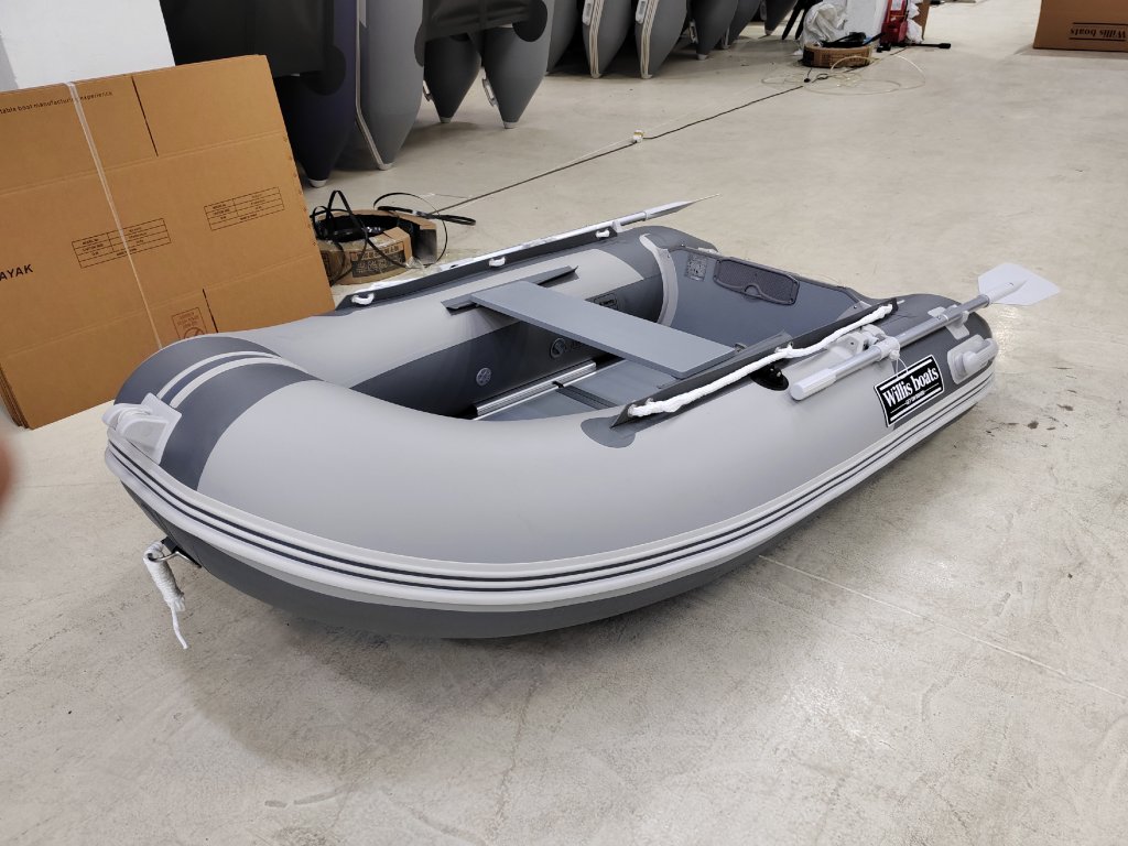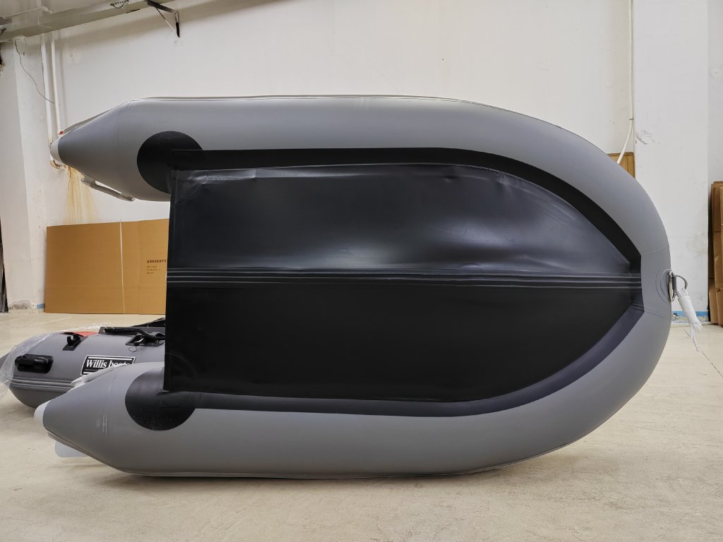 Nafukovací člun Willis boats RY-BD240 v šedo-šedé barvě se skládací dřevěnou podlahou