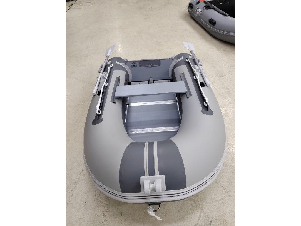 Kompaktní a pevný nafukovací člun, který je určen zejména pro příjemné trávení dovolené u vody. Člun lze využít na jednodenní vyjížďky pro přibližování se na nedostupná místa ze břehu či jako dinghy, tender pro větší jachty. Člun je vybaven držákem motoru, na který jde zavěsit motor o maximálním výkonu 5 Hp. Jedná se o velmi stabilní a bezpečný člun k použití na moři i na řece. Má skvělé jízdní vlastnosti díky nafukovacímu kýlu a tvaru dna do V. Člun má vysokou sedící pozici, díky nafukovacím válcům o průměru 38 cm, zároveň disponuje širokým kokpitem. Dalším důležitým prvkem je posuvná možnost lavičky pro nalezení ideálního místa k sezení pro ovládání motoru. Zároveň má člun již nalepené držáky pro bimini, sluneční stříšky - stačí dokoupit sluneční stříšku a jste chráněni před sluncem. Dalším důležitým prvkem je přední rolna pro uchycení kotvy nebo vnitřní přední oko pro její uchycení. Dále tento model nabízí dodatečná madla pro snadné přenášení člunu. Tento model je vybaven skládací dřevěnou podlahou. Obsahem balení jsou člun se skládací dřevěnou podlahou, vesla, lavička, sada lepení, taška na přepravu člunu, nožní pumpa na nafouknutí člunu a uživatelský manuál.