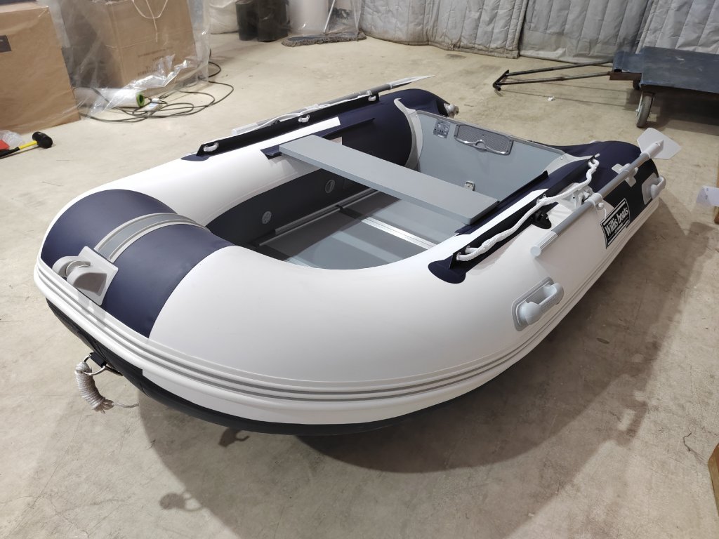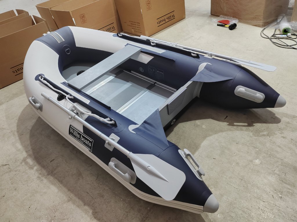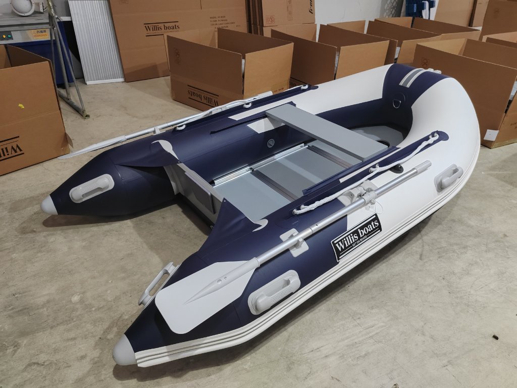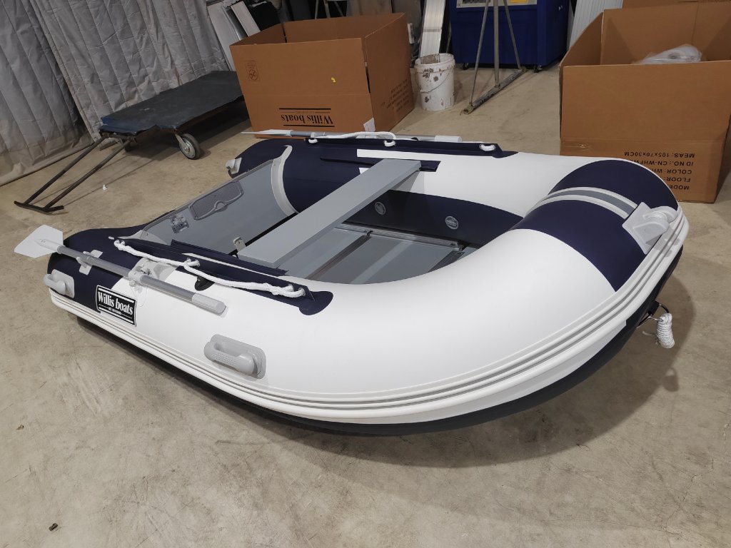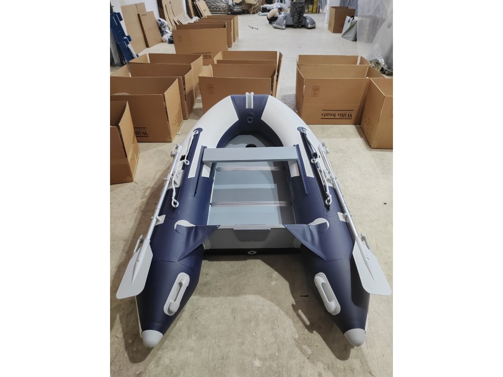 Nafukovací člun Willis boats RY-BD270 v bílo-modré barvě se skládací dřevěnou podlahou