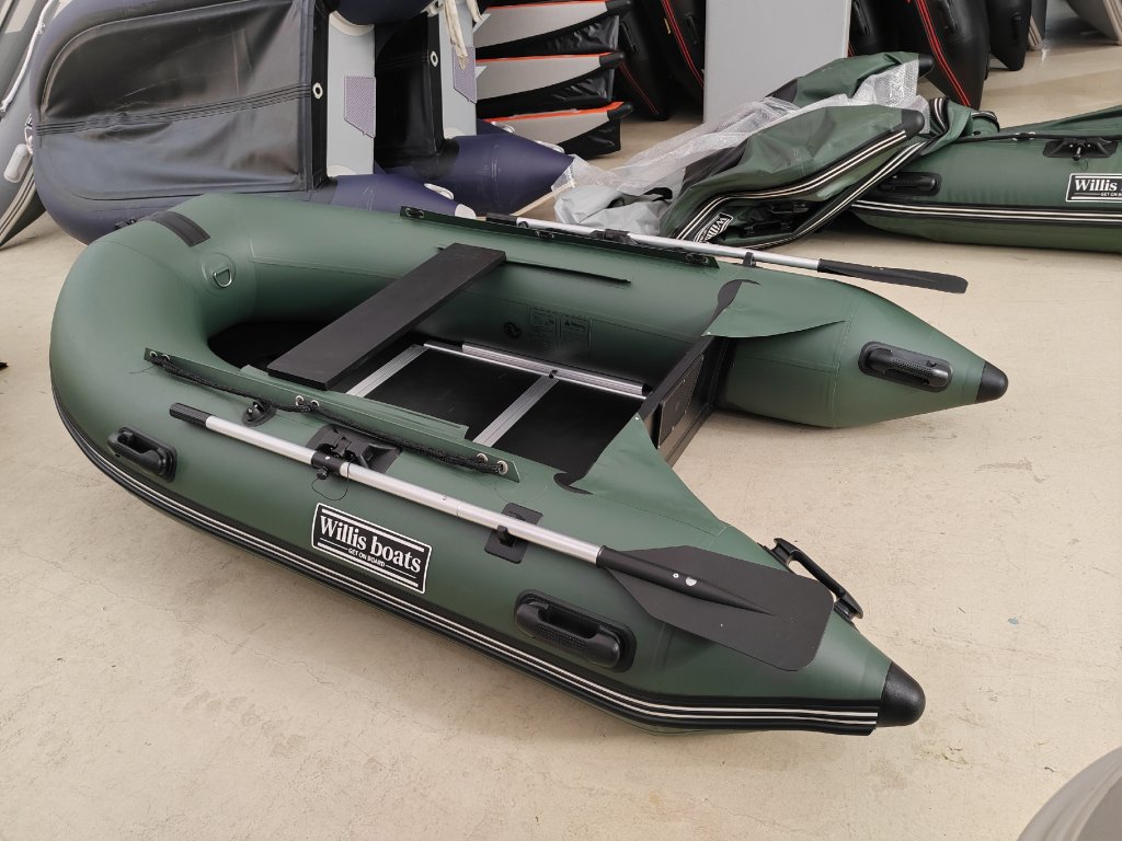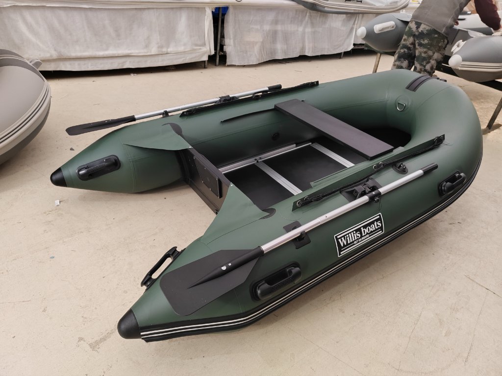Nafukovací člun Willis boats RY-BD270 v zelené barvě se skládací dřevěnou podlahou