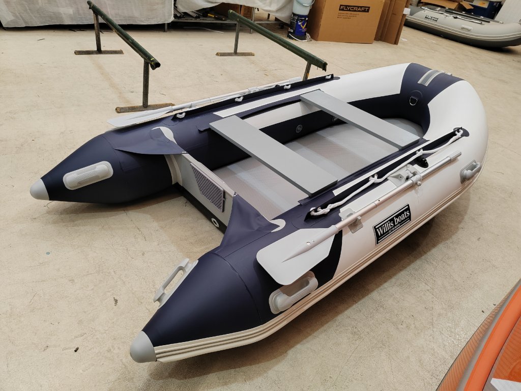 Nafukovací člun Willis boats RY-BD300 v bílo-modré barvě s nafukovací podlahou