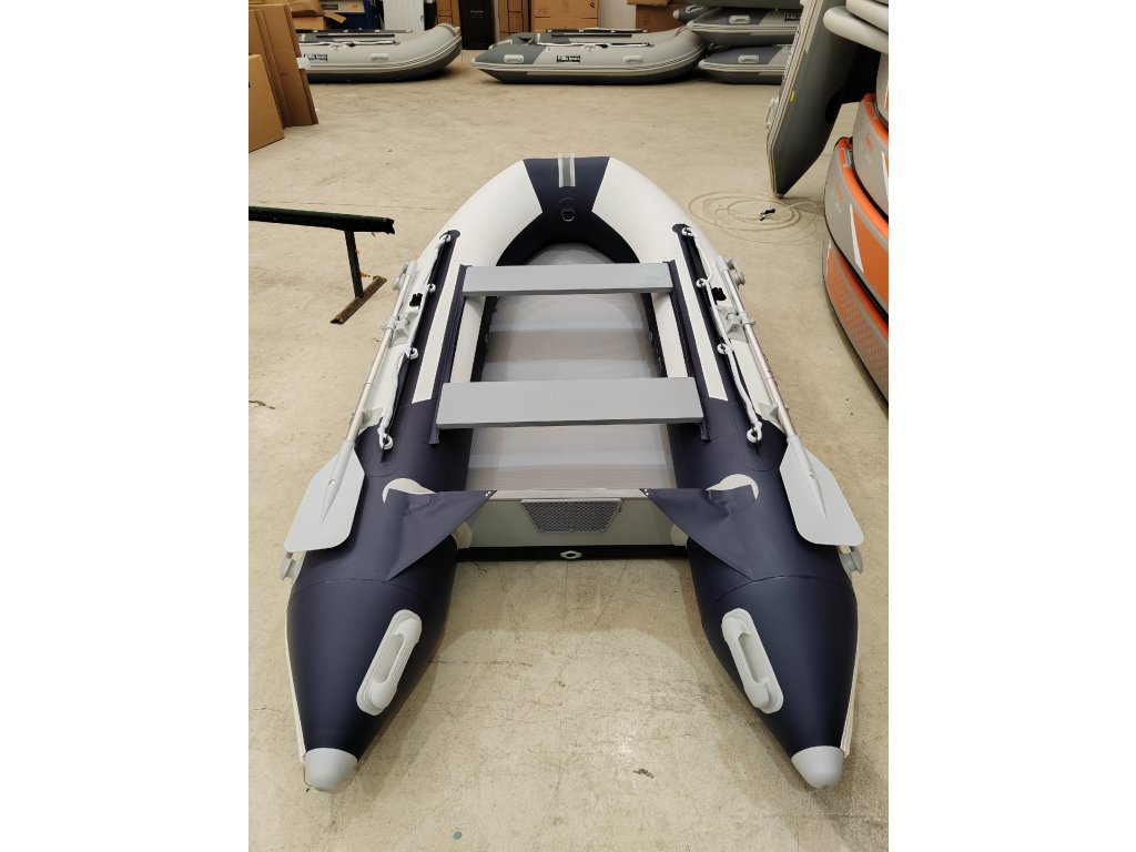 Celonafukovací kompaktní člun, který je určen zejména pro příjemné trávení dovolené u vody. Člun lze využít na jednodenní vyjížďky pro přibližování se na nedostupná místa ze břehu či jako dinghy, tender pro větší jachty. Člun je vybaven držákem motoru, na který jde zavěsit motor o maximálním výkonu 10 Hp. Jedná se o velmi stabilní a bezpečný člun k použití na moři i na řece, zároveň ho lze celý jednoduše vyfouknout, zabalit do tašky a odnést, kam je potřeba. Má skvělé jízdní vlasnosti díky nafukovacímu kýlu a tvaru dna do V. Člun má vysokou sedící pozici, díky nafukovacím válcům o průměru 38 cm, zároveň disponuje širokým kokpitem. Dalším důležitým prvkem jsou 2 posuvné lavičky pro nalezení ideálního místa k sezení pro ovládání motoru. Zároveň má člun již nalepené držáky pro bimini, sluneční stříšky - stačí dokoupit sluneční stříšku a jste chráněni před sluncem. Dalším důležitým prvkem je přední rolna pro uchycení kotvy nebo vnitřní přední oko pro její uchycení. Dále tento model nabízí dodatečná madla pro snadné přenášení člunu. Tento model je vybaven vysokotlakou podlahou. Obsahem balení jsou člun s vysokotlakou podlahou, vesla, 2 lavičky, sada lepení, taška na přepravu člunu, nožní pumpa na nafouknutí člunu a uživatelský manuál.