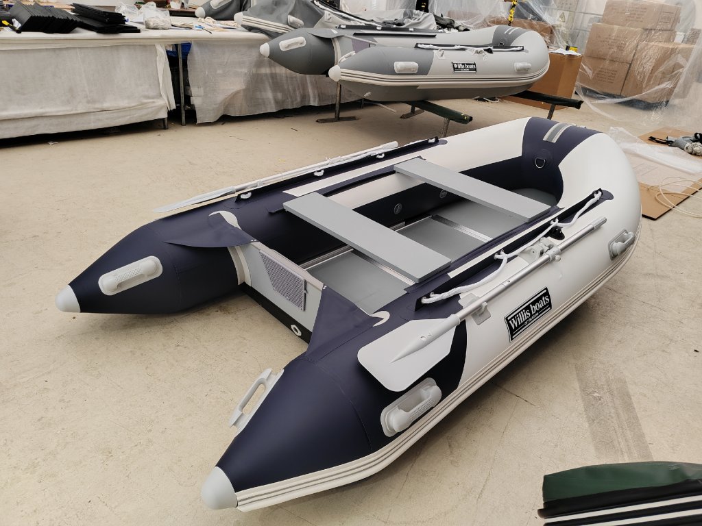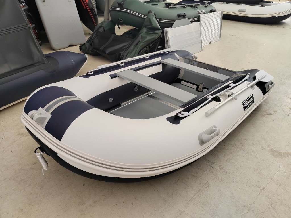 Nafukovací člun Willis boats RY-BD300 v bílo-modré barvě se skládací dřevěnou podlahou