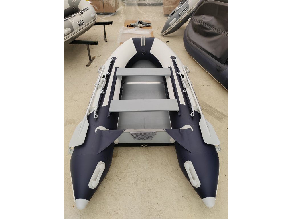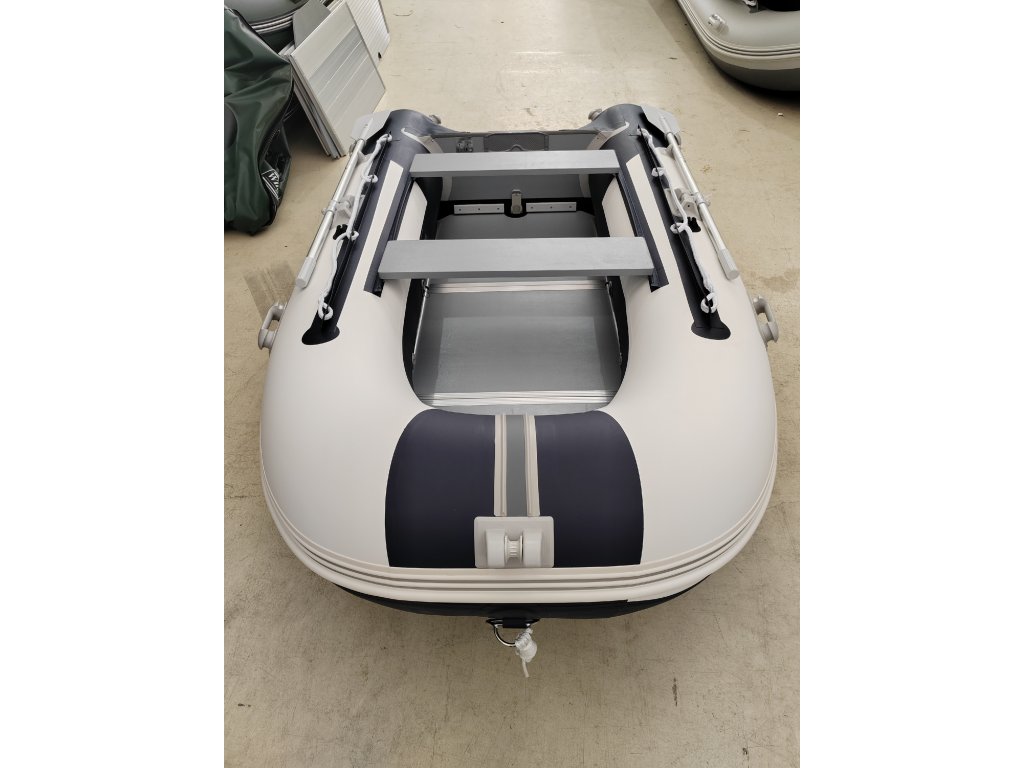 Kompaktní a pevný nafukovací člun, který je určen zejména pro příjemné trávení dovolené u vody. Člun lze využít na jednodenní vyjížďky pro přibližování se na nedostupná místa ze břehu či jako dinghy, tender pro větší jachty. Člun je vybaven držákem motoru, na který jde zavěsit motor o maximálním výkonu 10 Hp. Jedná se o velmi stabilní a bezpečný člun k použití na moři i na řece. Má skvělé jízdní vlastnosti díky nafukovacímu kýlu a tvaru dna do V. Člun má vysokou sedící pozici, díky nafukovacím válcům o průměru 42 cm, zároveň disponuje širokým kokpitem. Dalším důležitým prvkem jsou posuvné lavičky pro nalezení ideálního místa k sezení pro ovládání motoru. Zároveň má člun již nalepené držáky pro bimini, sluneční stříšky - stačí dokoupit sluneční stříšku a jste chráněni před sluncem. Dalším důležitým prvkem je přední rolna pro uchycení kotvy nebo vnitřní přední oko pro její uchycení. Dále tento model nabízí dodatečná madla pro snadné přenášení člunu. Tento model je vybaven skládací dřevěnou podlahou. Obsahem balení jsou člun se skládací dřevěnou podlahou, vesla, lavička, sada lepení, taška na přepravu člunu, nožní pumpa na nafouknutí člunu a uživatelský manuál.