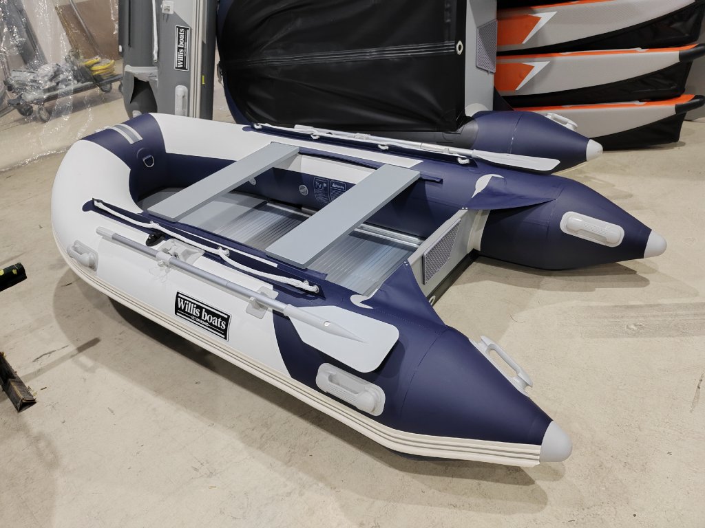 Nafukovací člun Willis boats RY-BD300 v bílo-modré barvě se skládací hliníkovou podlahou