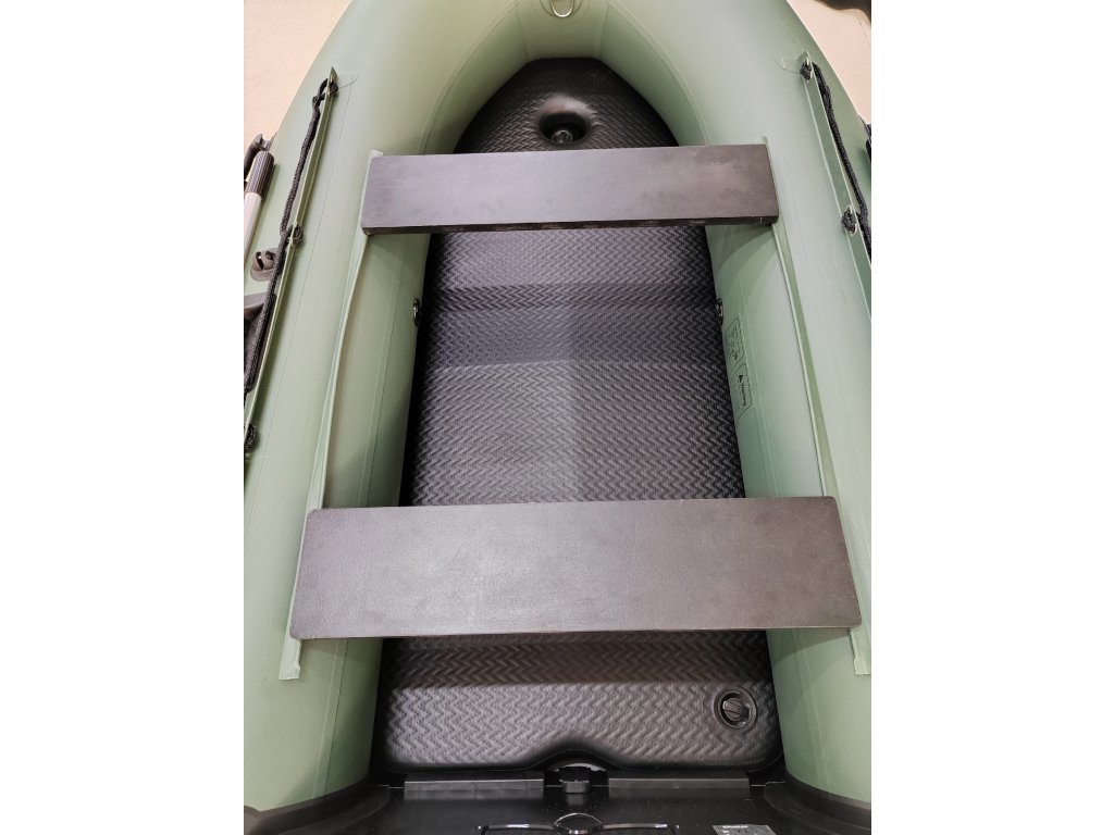Celonafukovací kompaktní člun, který je určen zejména pro příjemné trávení dovolené u vody. Člun lze využít na jednodenní vyjížďky pro přibližování se na nedostupná místa ze břehu či jako dinghy, tender pro větší jachty. Člun je vybaven držákem motoru, na který jde zavěsit motor o maximálním výkonu 10 Hp. Jedná se o velmi stabilní a bezpečný člun k použití na moři i na řece, zároveň ho lze celý jednoduše vyfouknout, zabalit do tašky a odnést, kam je potřeba. Má skvělé jízdní vlasnosti díky nafukovacímu kýlu a tvaru dna do V. Člun má vysokou sedící pozici, díky nafukovacím válcům o průměru 38 cm, zároveň disponuje širokým kokpitem. Dalším důležitým prvkem jsou 2 posuvné lavičky pro nalezení ideálního místa k sezení pro ovládání motoru. Zároveň má člun již nalepené držáky pro bimini, sluneční stříšky - stačí dokoupit sluneční stříšku a jste chráněni před sluncem. Dalším důležitým prvkem je přední rolna pro uchycení kotvy nebo vnitřní přední oko pro její uchycení. Dále tento model nabízí dodatečná madla pro snadné přenášení člunu. Tento model je vybaven vysokotlakou podlahou. Obsahem balení jsou člun s vysokotlakou podlahou, vesla, 2 lavičky, sada lepení, taška na přepravu člunu, nožní pumpa na nafouknutí člunu a uživatelský manuál.