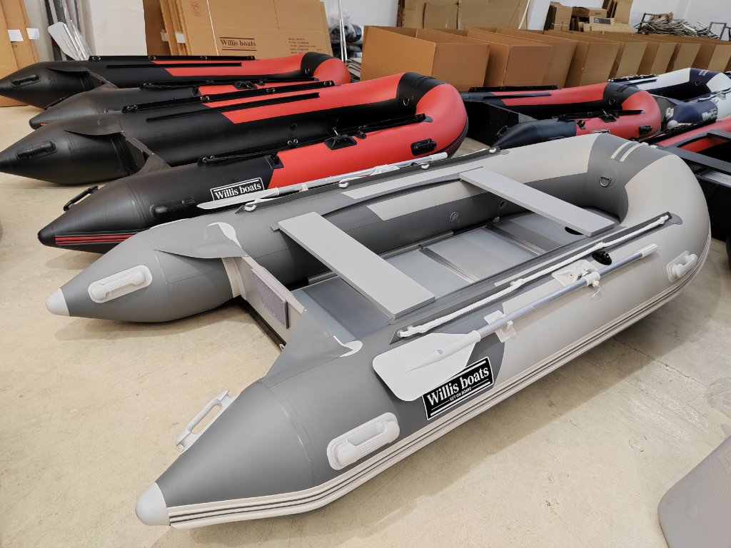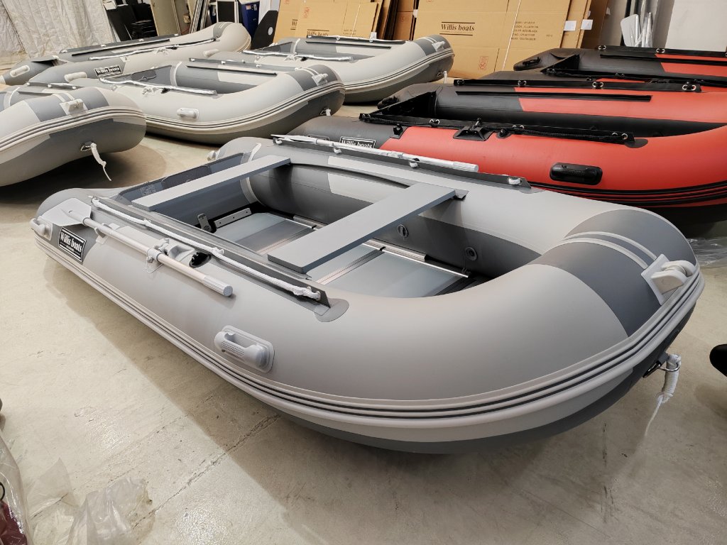 Nafukovací člun Willis boats RY-BD330 v šedo-šedé barvě se skládací dřevěnou podlahou