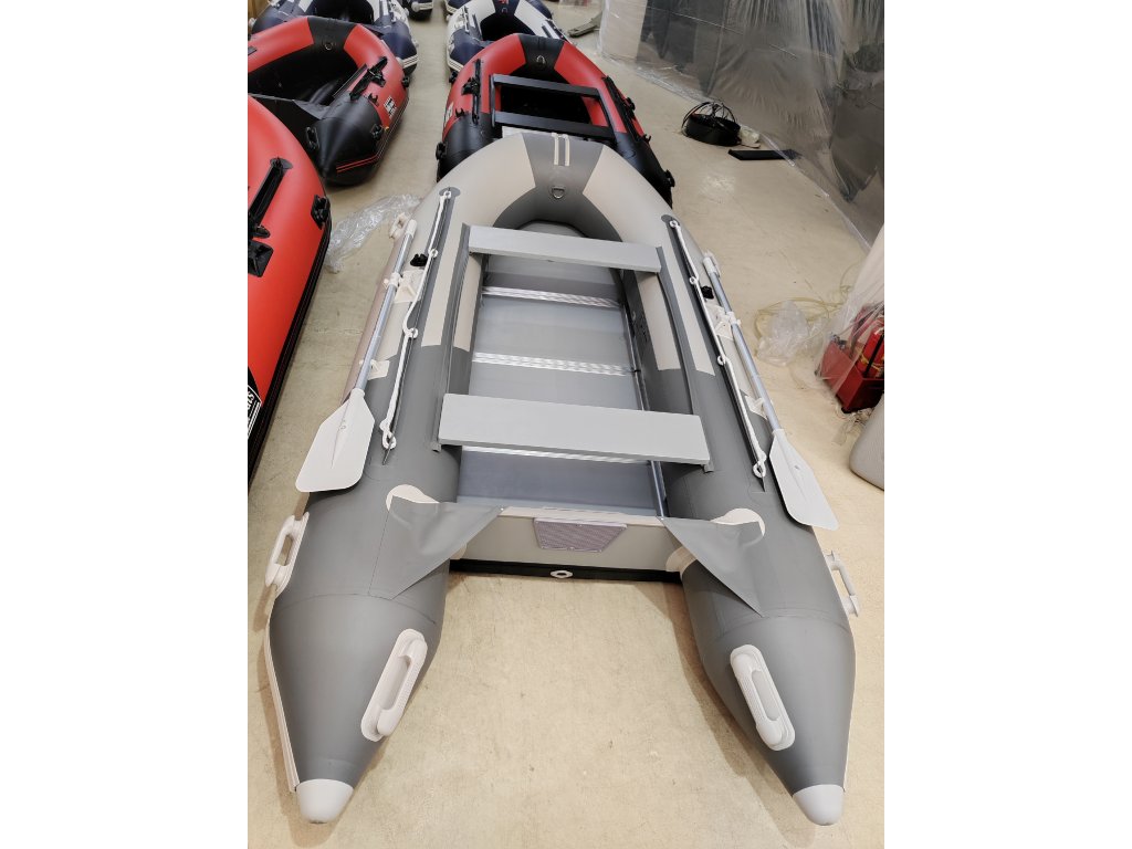 Kompaktní a pevný nafukovací člun, který je určen zejména pro příjemné trávení dovolené u vody. Člun lze využít na jednodenní vyjížďky pro přibližování se na nedostupná místa ze břehu či jako dinghy, tender pro větší jachty. Člun je vybaven držákem motoru, na který jde zavěsit motor o maximálním výkonu 15 Hp. Jedná se o velmi stabilní a bezpečný člun k použití na moři i na řece. Má skvělé jízdní vlastnosti díky nafukovacímu kýlu a tvaru dna do V. Člun má vysokou sedící pozici, díky nafukovacím válcům o průměru 42 cm, zároveň disponuje širokým kokpitem. Dalším důležitým prvkem jsou posuvné lavičky pro nalezení ideálního místa k sezení pro ovládání motoru. Zároveň má člun již nalepené držáky pro bimini, sluneční stříšky - stačí dokoupit sluneční stříšku a jste chráněni před sluncem. Dalším důležitým prvkem je přední rolna pro uchycení kotvy nebo vnitřní přední oko pro její uchycení. Dále tento model nabízí dodatečná madla pro snadné přenášení člunu. Tento model je vybaven skládací dřevěnou podlahou. Obsahem balení jsou člun se skládací dřevěnou podlahou, vesla, lavička, sada lepení, taška na přepravu člunu, nožní pumpa na nafouknutí člunu a uživatelský manuál.