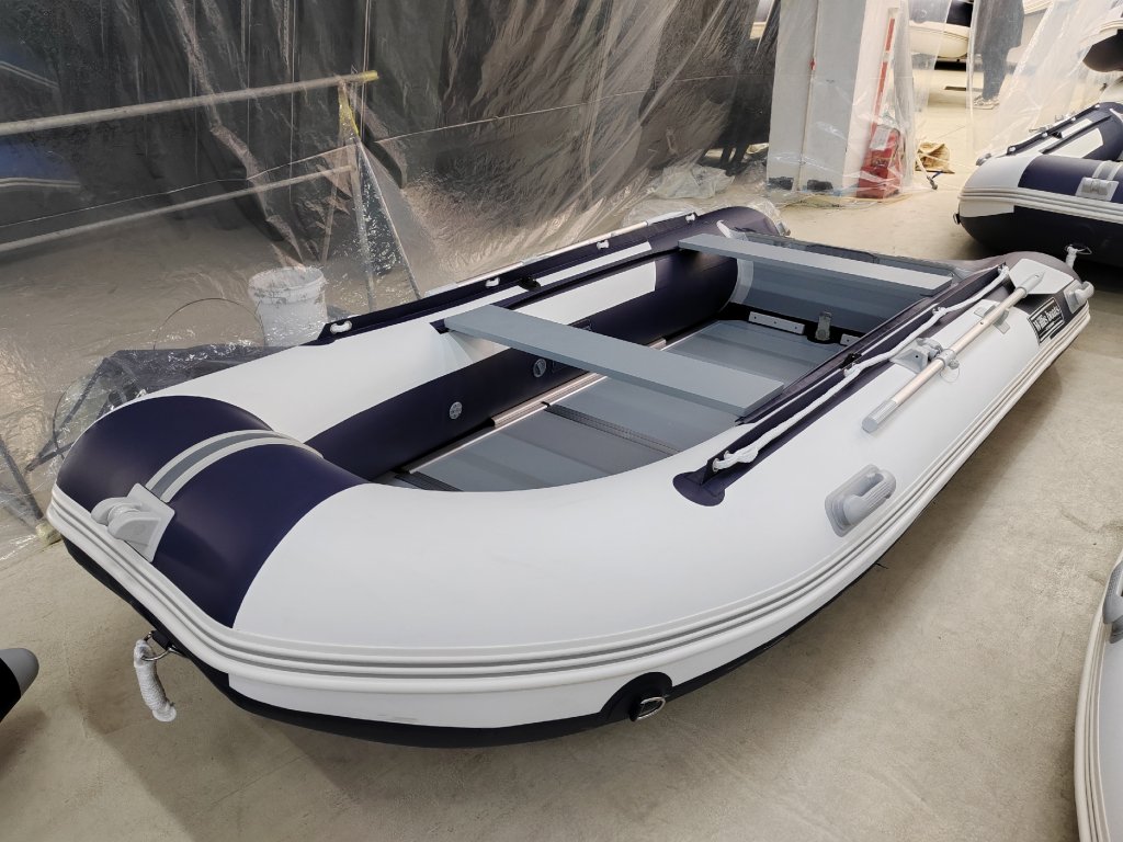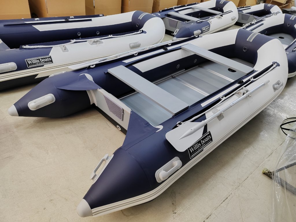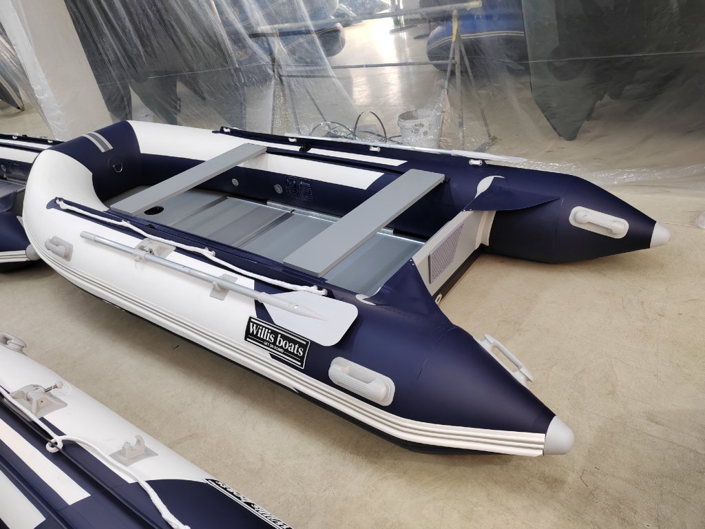 Nafukovací člun Willis boats RY-BD370 v bílo-modré barvě se skládací dřevěnou podlahou