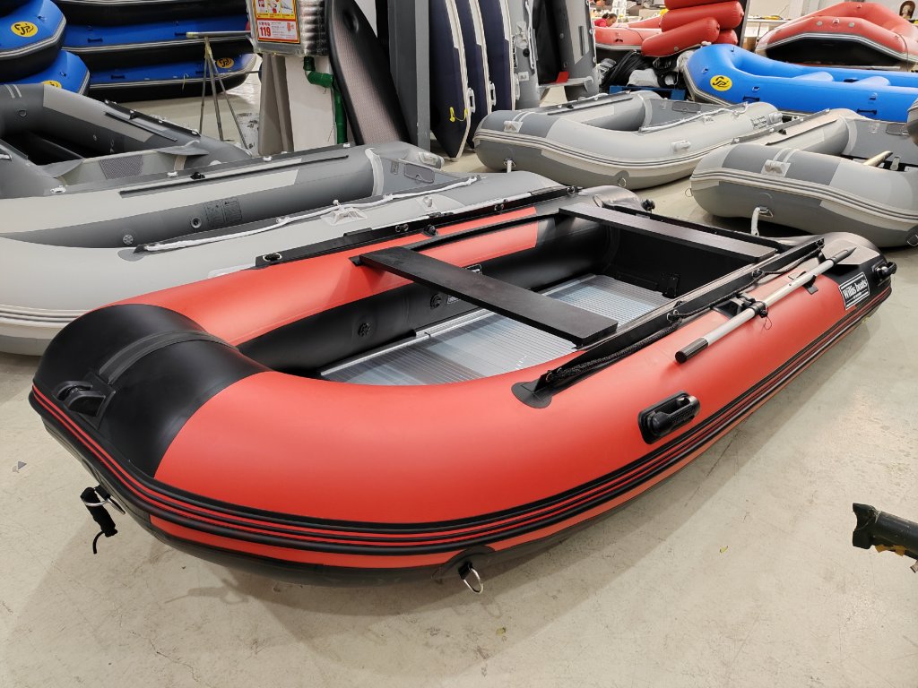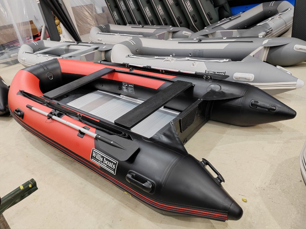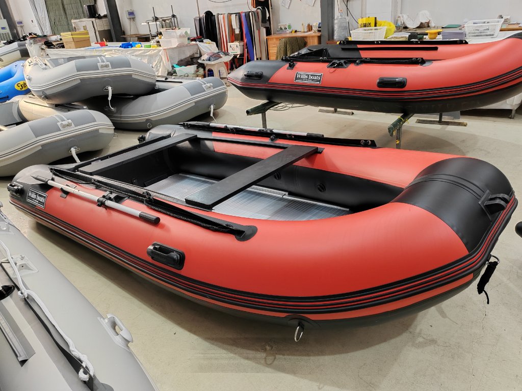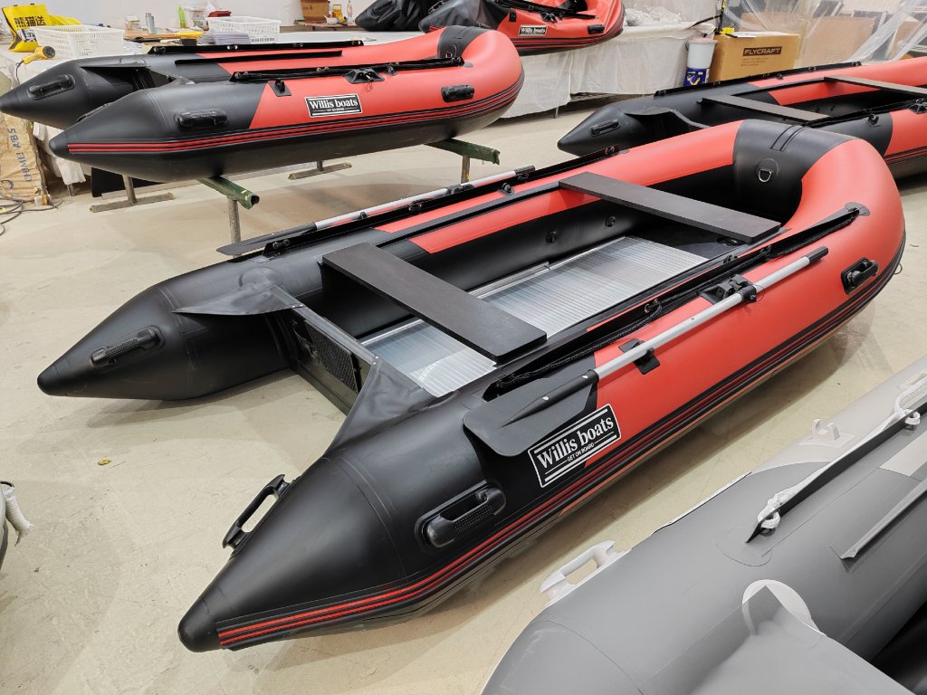 Nafukovací člun Willis boats RY-BD370 v červeno-černé barvě se skládací hliníkovou podlahou