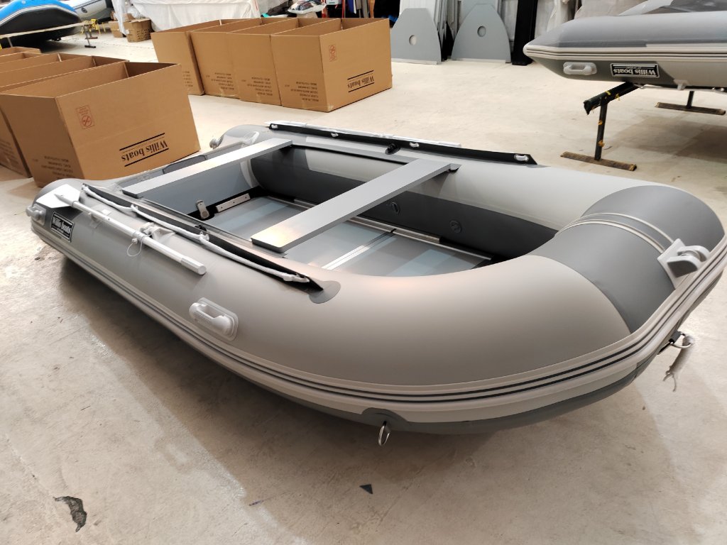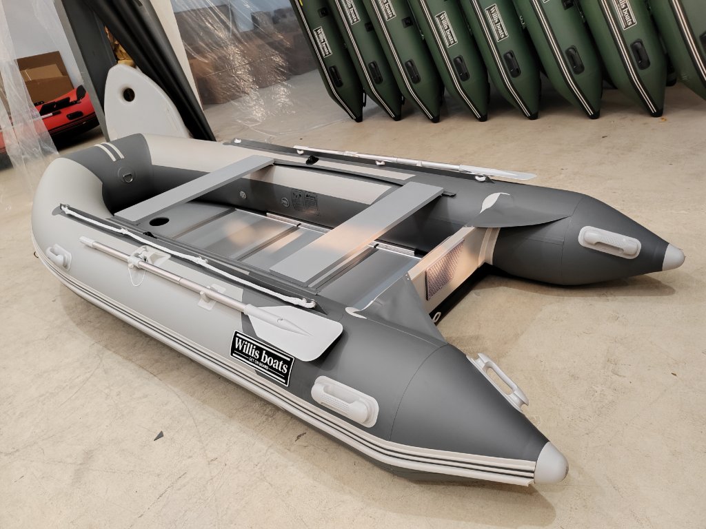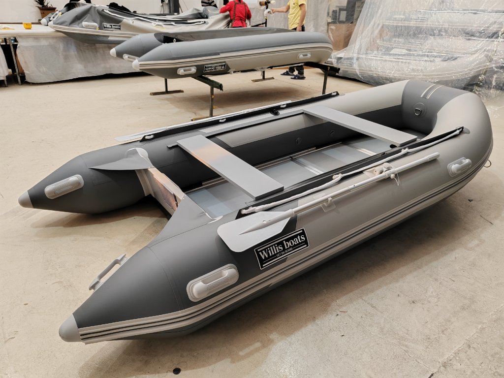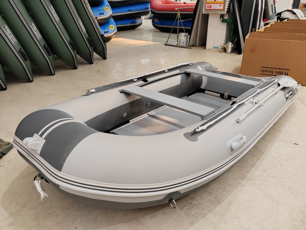 Nafukovací člun Willis boats RY-BD370 v šedo-šedé barvě se skládací dřevěnou podlahou