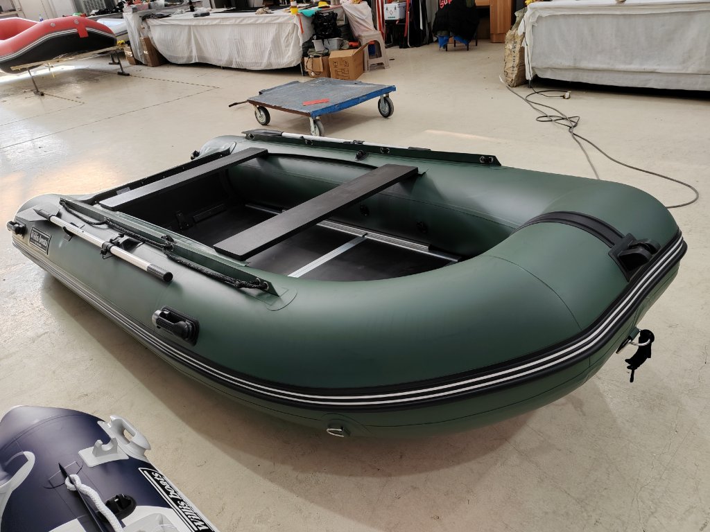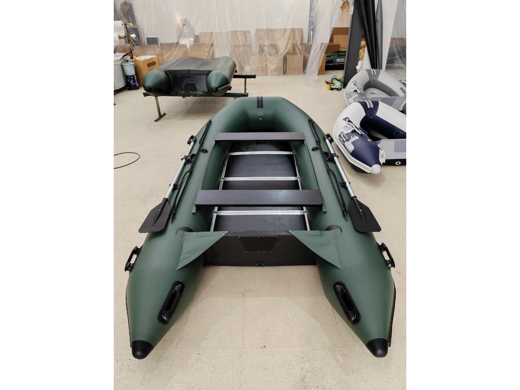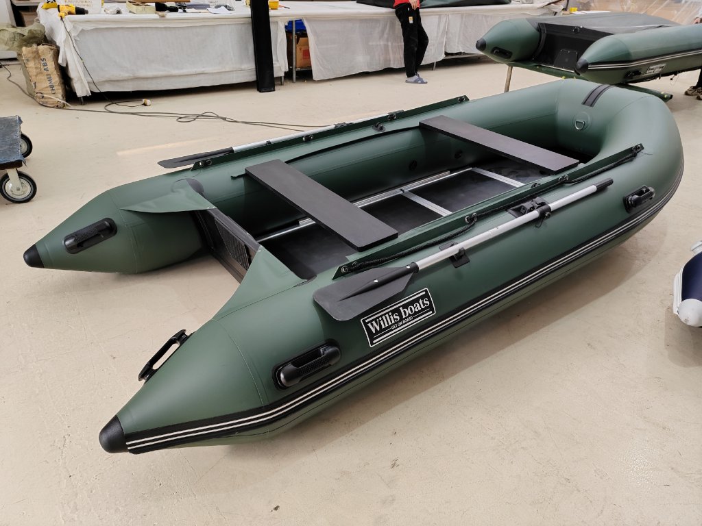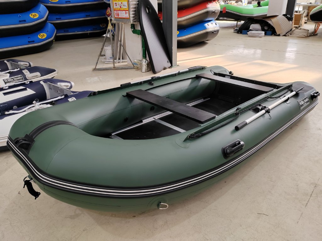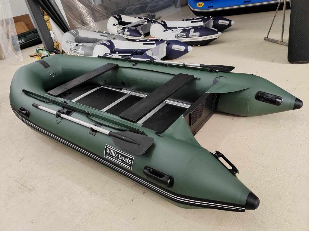 Nafukovací člun Willis boats RY-BD370 v zelené barvě se skládací dřevěnou podlahou