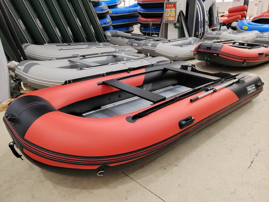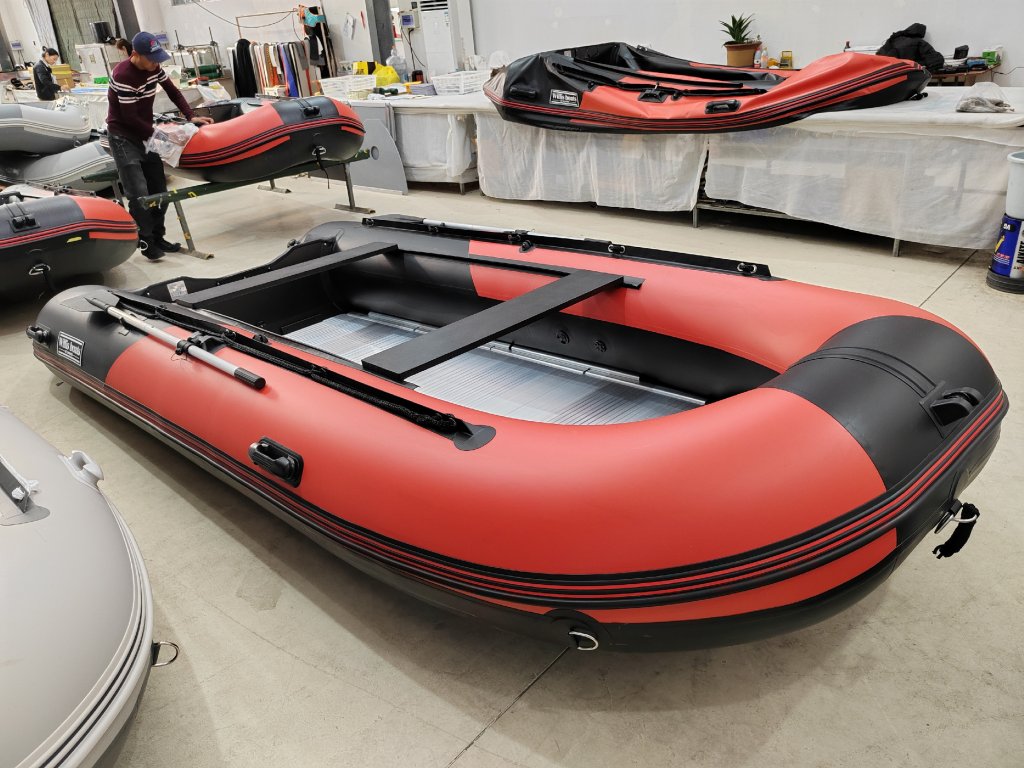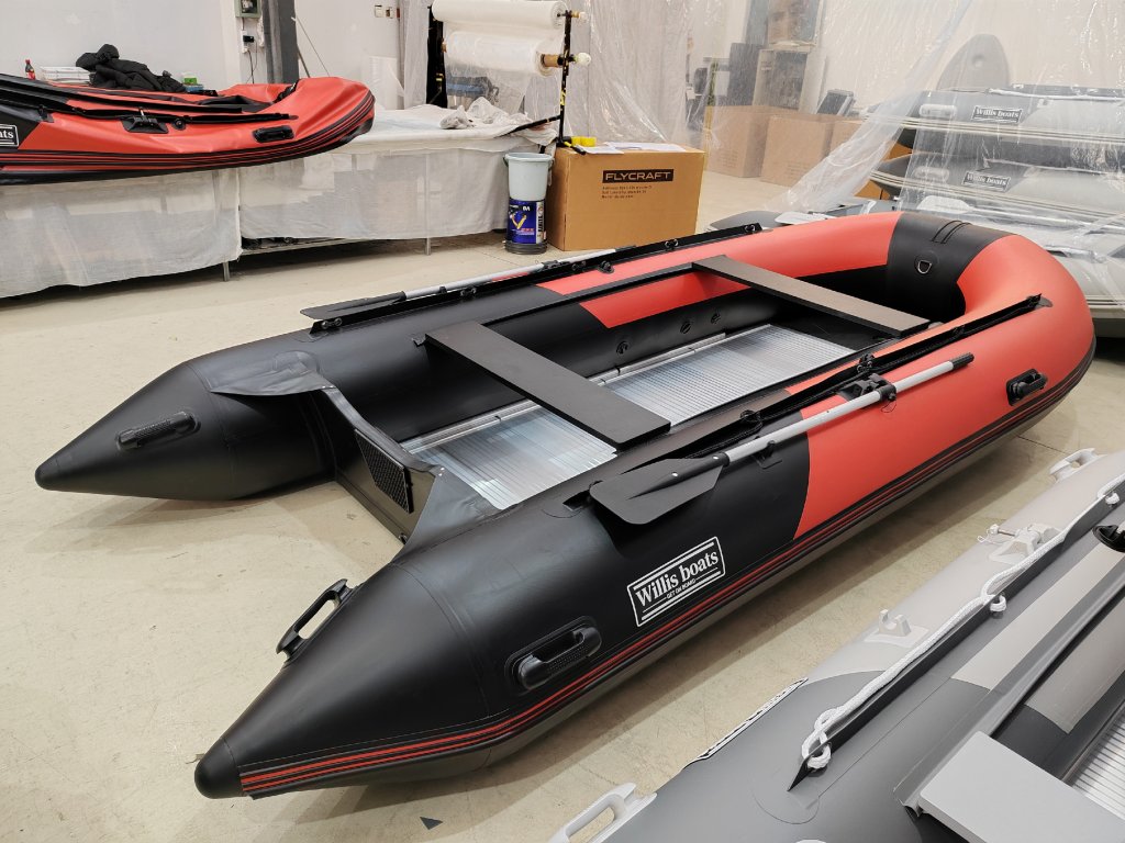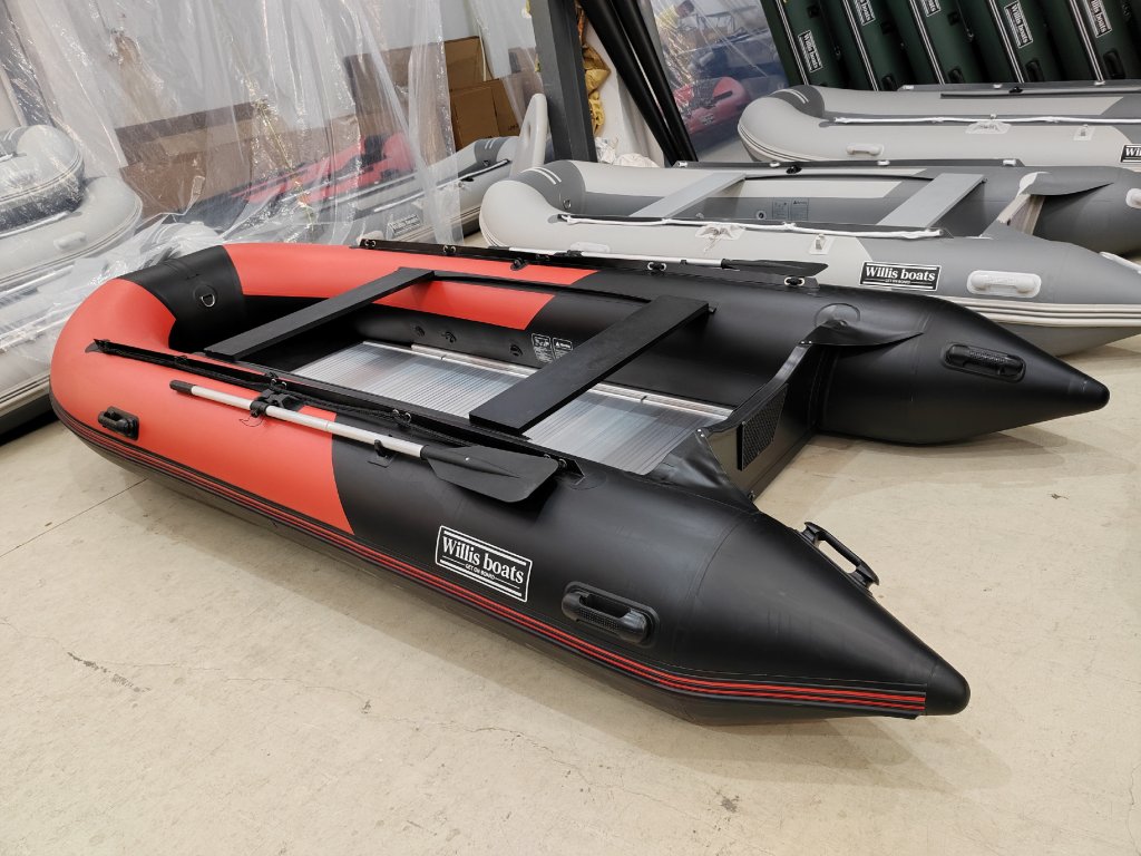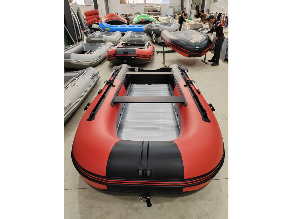 Nafukovací člun Willis boats RY-BD420 v červeno-černé barvě se skládací hliníkovou podlahou