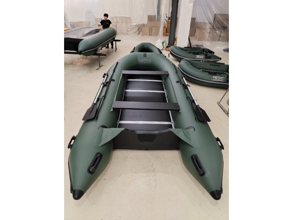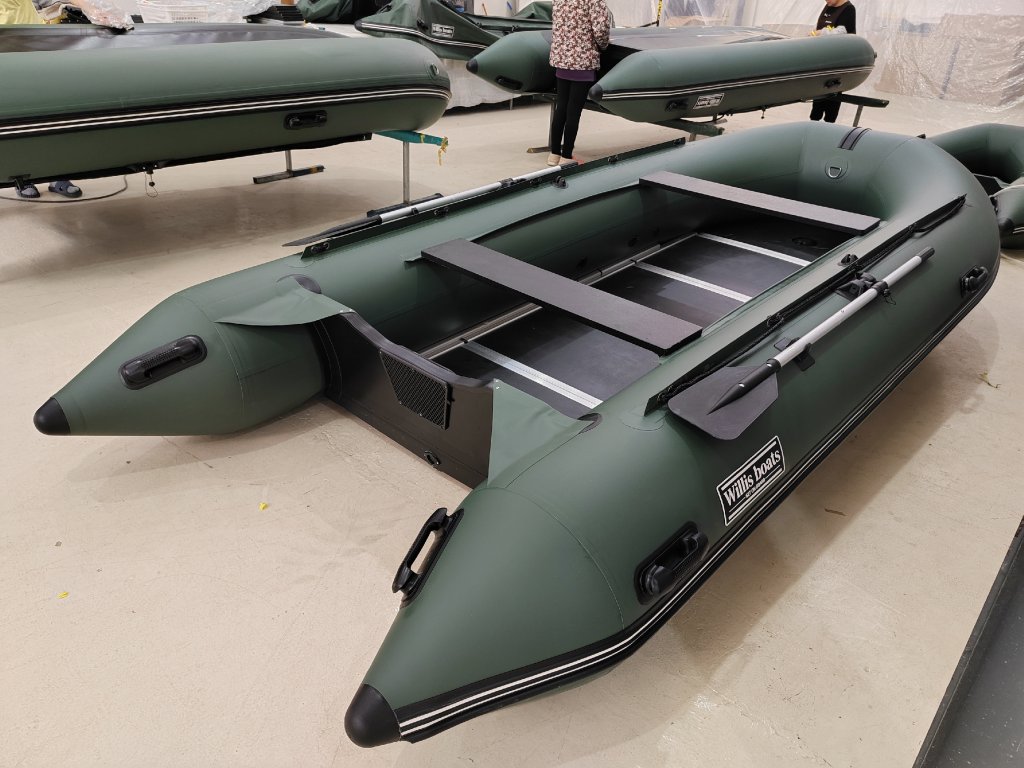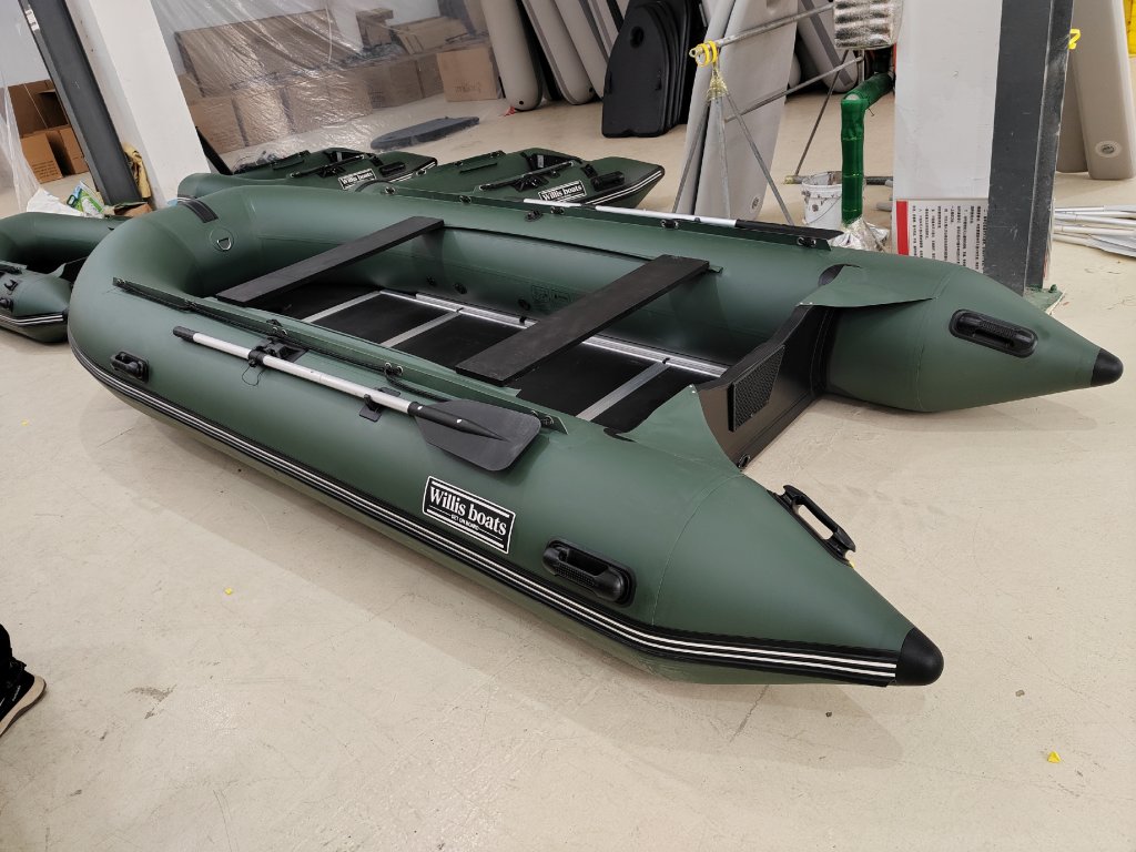 Nafukovací člun Willis boats RY-BD420 v zelené barvě se skládací dřevěnou podlahou