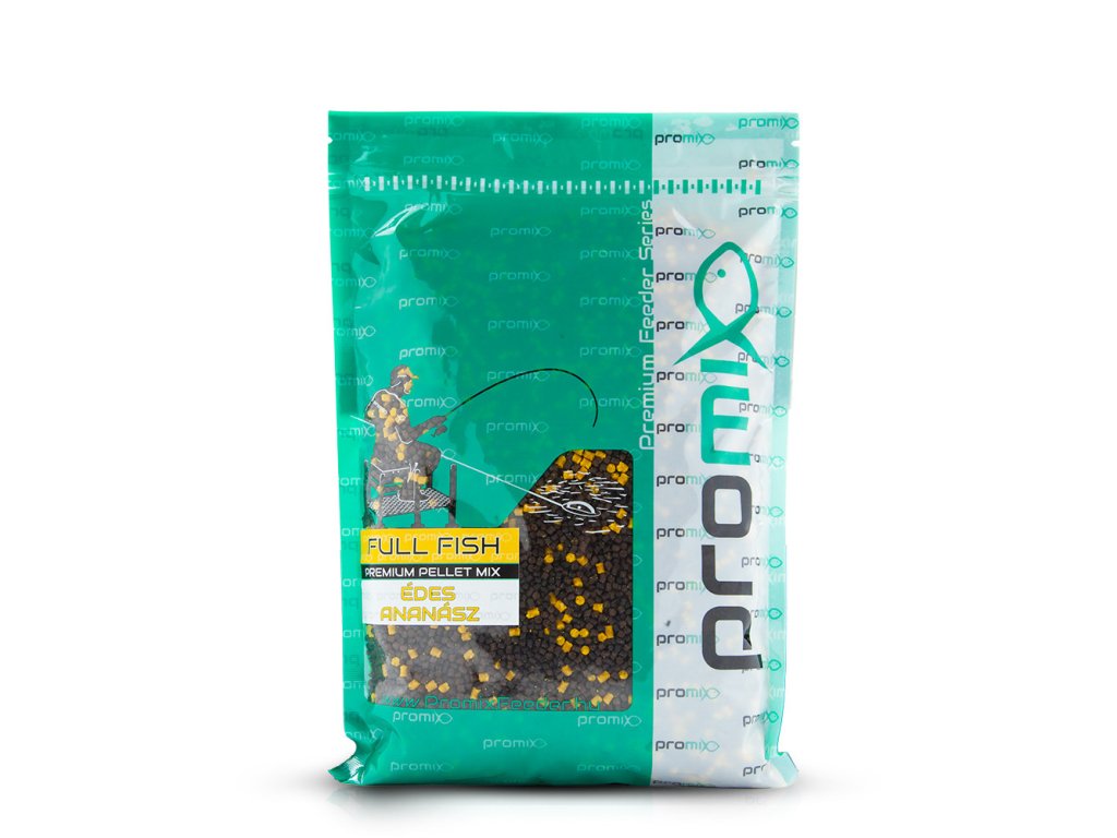 Složení směsi Promix Full Fish Pellet bylo navrženo tak, aby si zachovalo co nejvyšší obsah snadno stravitelných sacharidů a zároveň vysoký obsah bílkovin 38 %. Vzniká tak komplexní směs obsahující všechny potřebné živiny s vynikajícími ukazateli obsahu. Kromě rybí moučky nejvyšší kvality je obsah bílkovin doplněn o rostlinné bílkoviny prémiové kvality, z nichž nejvíce vyniká konopný a kukuřičný klíčkový protein. Má vysoký obsah vlákniny, což zaručuje snadnou stravitelnost.